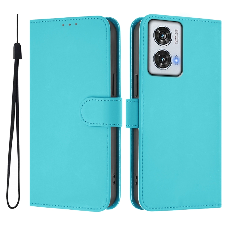 Funda de Piel Sintética con Cordón para Motorola Edge 50 Fusion (Azul Lago)