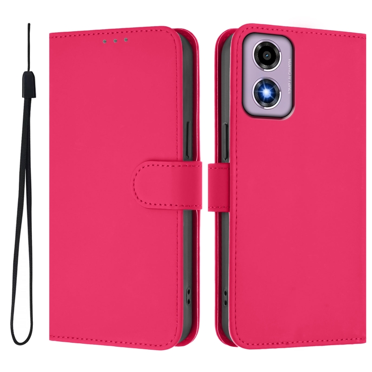 Funda de Piel Sintética con Cordón para Motorola Moto E14/G04 4G (Rosa y Rojo)
