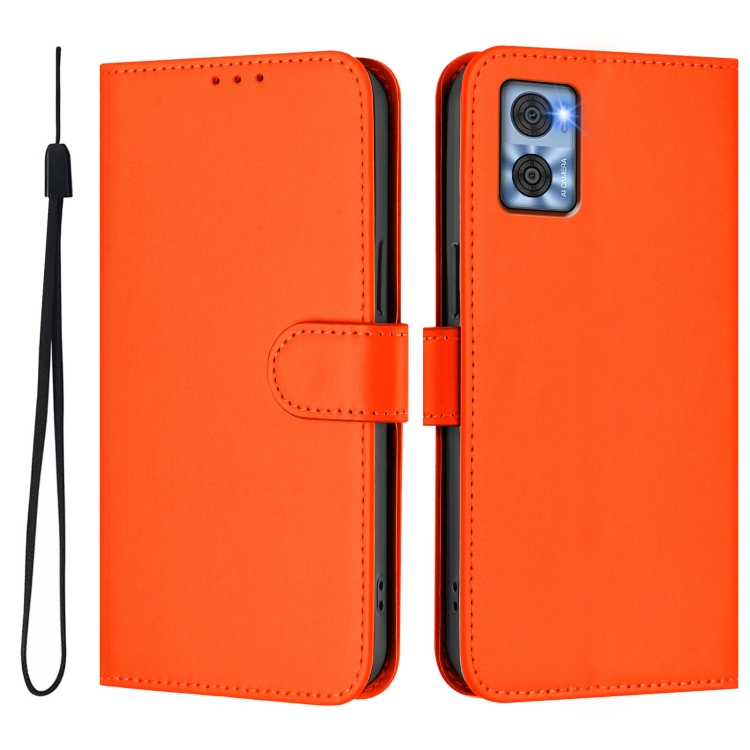 Funda de Piel Sintética con Cordón para Motorola Moto E22 4G/E22I 4G (Naranja)
