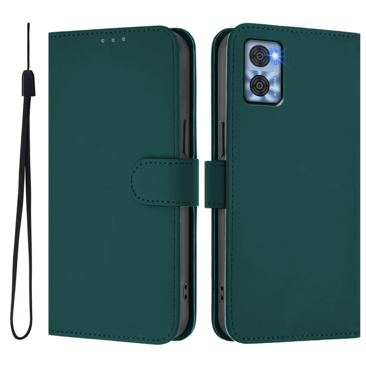 Funda de Piel Sintética con Cordón para Motorola Moto E22 4G/E22I 4G (Verde Oscuro)