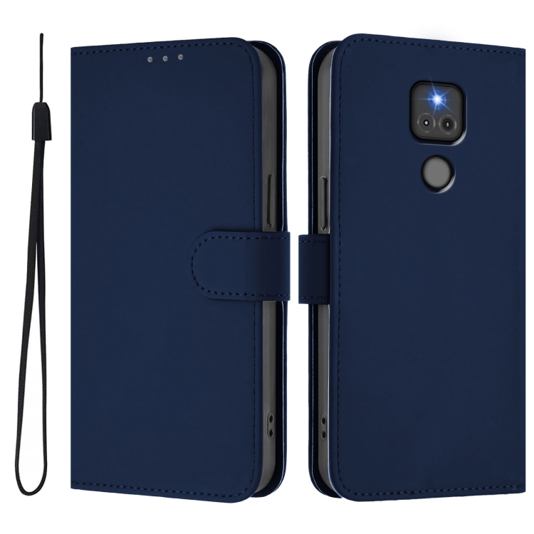 Funda de Piel Sintética con Cordón para Motorola Moto G Play 2021 (Azul Marino)