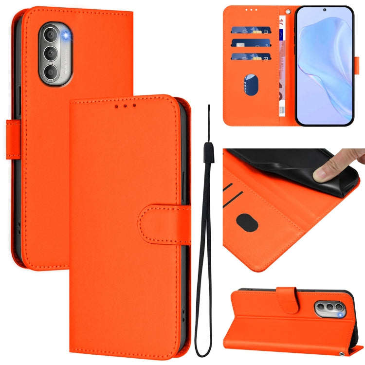 Funda de Piel Sintética con Cordón para Motorola Moto G51 5G (Naranja)