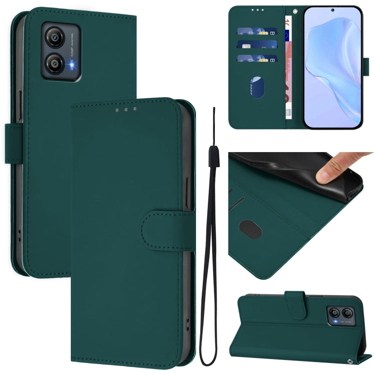 Funda de Piel Sintética con Cordón para Motorola Moto G53 5G y G13 4G (Verde Oscuro)