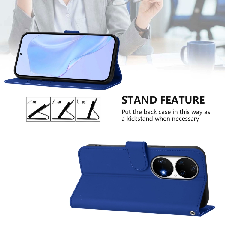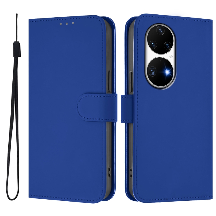 Funda de Piel Sintética con Cordón para Huawei P50 Pro (Azul Oscuro)