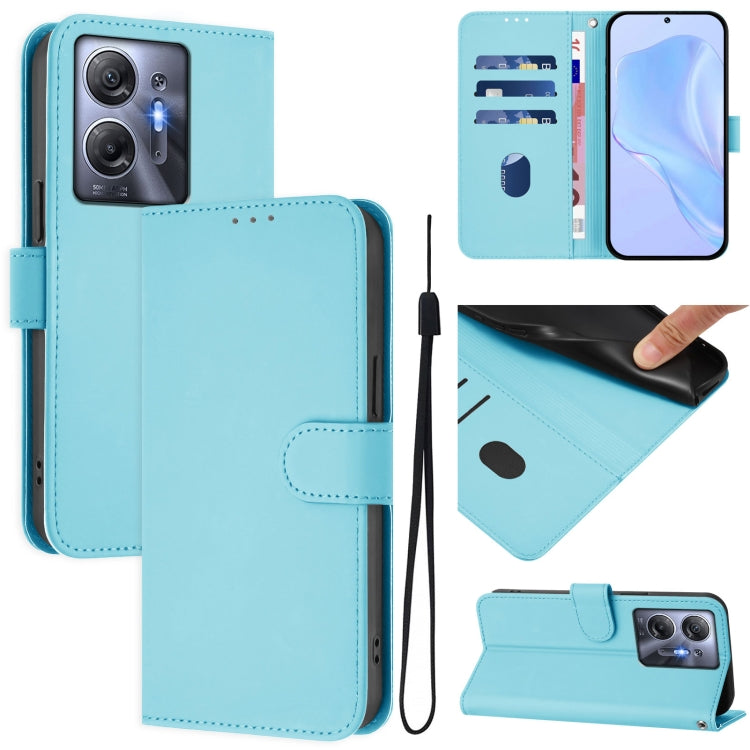 Funda de Piel Sintética con Cordón para Teléfono Infinix Hot 30 5G (Azul Cielo)