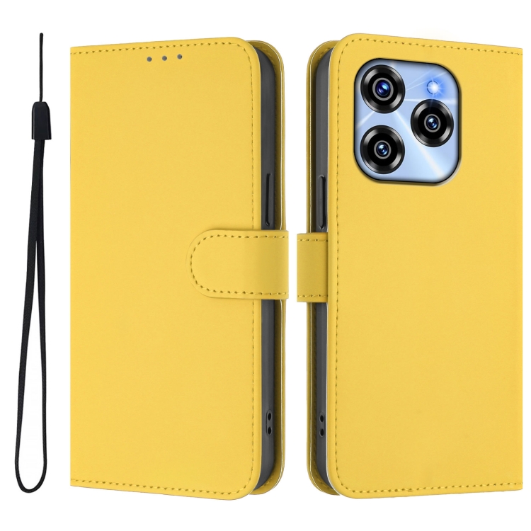 Funda de Piel Sintética con Cordón para Teléfono Oukitel C50 (Amarillo Limón)