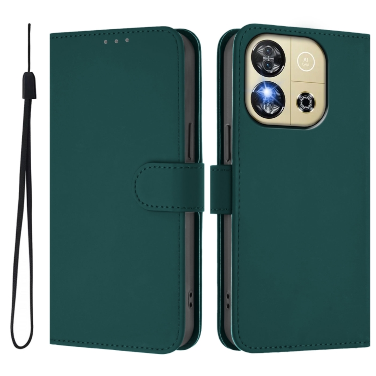 Funda de Piel Sintética con Cordón para Teléfono Oukitel C57S (Verde Oscuro)