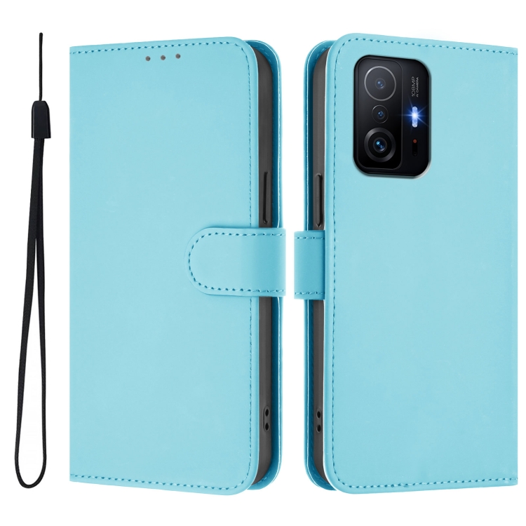 Funda de Piel Sintética con Cordón para Xiaomi 11T/11T Pro (Azul Cielo)