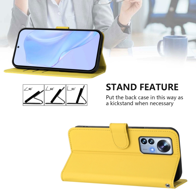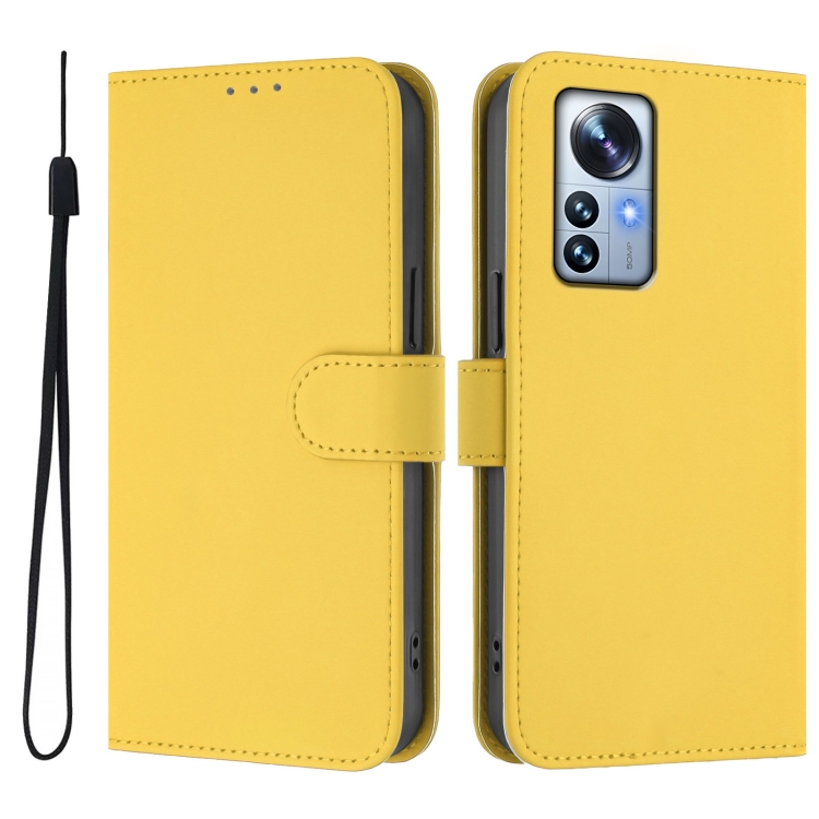 Funda de Piel Sintética con Cordón para Xiaomi 12S Pro/12 Pro (Amarillo Limón)