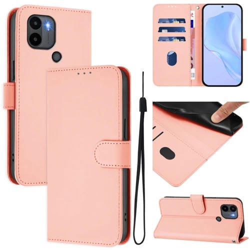 Funda de Piel Sintética con Cordón para Xiaomi Poco C50 4G/C51 (Rosa)