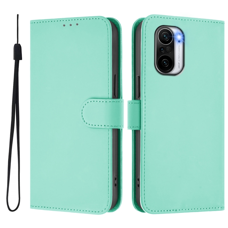 Funda de Piel Sintética con Cordón para Xiaomi Poco F3 (Verde Menta)