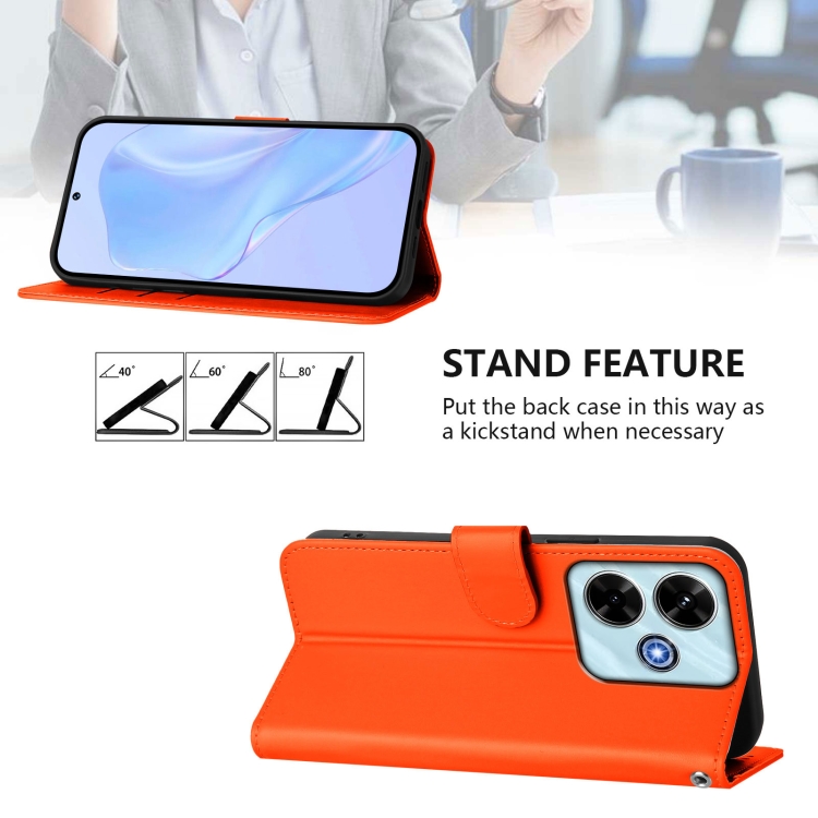Funda de Piel Sintética con Cordón para Xiaomi Poco M6 4G (Naranja)