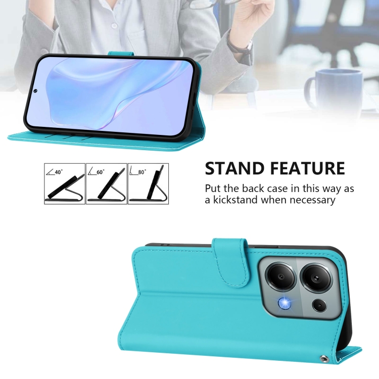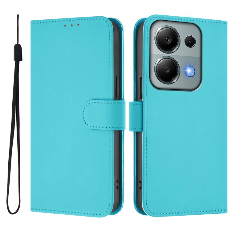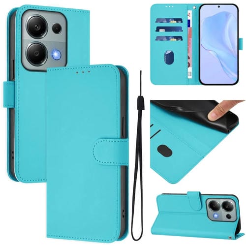 Funda de Piel Sintética con Cordón para Xiaomi Poco M6 Pro 4G (Azul Lago)