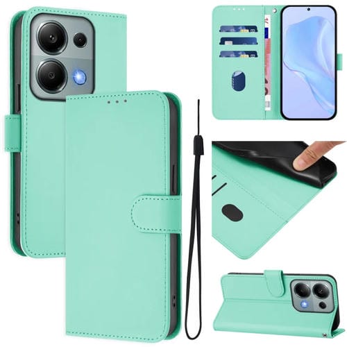 Funda de Piel Sintética con Cordón para Xiaomi Poco M6 Pro 4G (Verde Menta)
