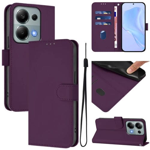 Funda de Piel Sintética con Cordón para Xiaomi Poco M6 Pro 4G (Violeta)