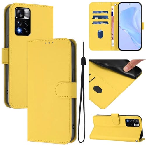 Funda de Piel Sintética con Cordón para Xiaomi Poco X4 Nfc 5G (Amarillo Limón)