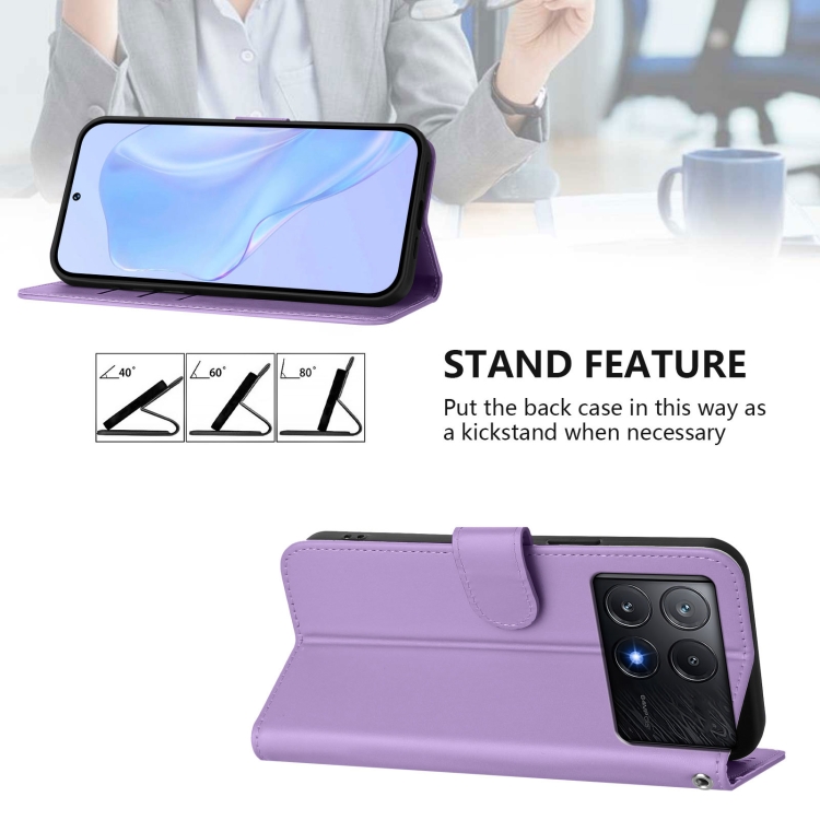 Funda de Piel Sintética con Cordón para Xiaomi Poco X6 Pro (Morado Lavanda)