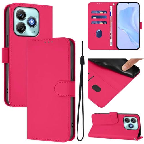 Funda de Piel Sintética con Cordón para ZTE Blade A75 4G (Rosa y Rojo)