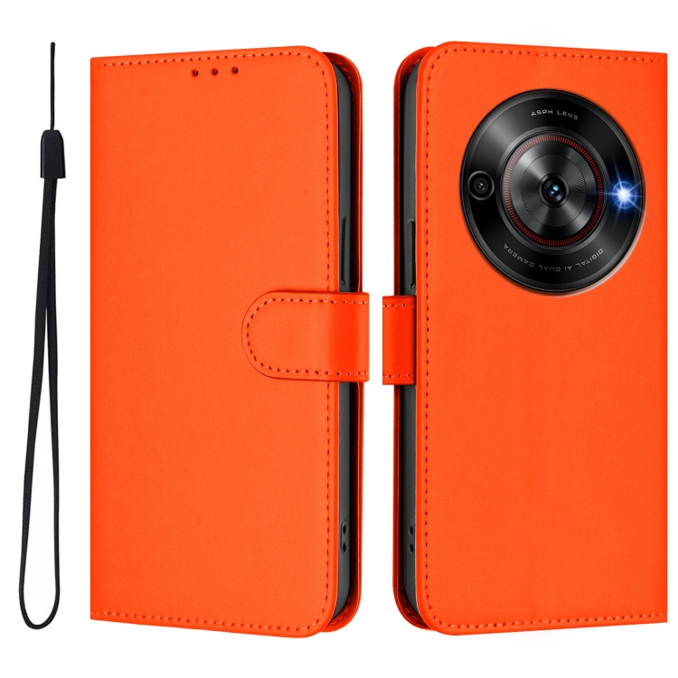 Funda de Piel Sintética con Cordón para ZTE Blade A75 5G (Naranja)