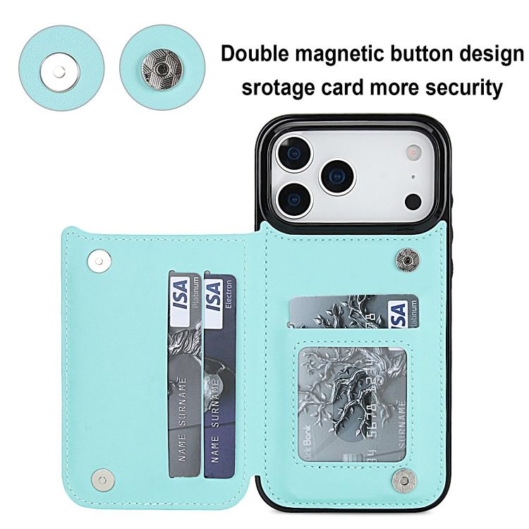 Funda de piel sintética con doble hebilla rómbica para iPhone 17 Pro Max (azul)
