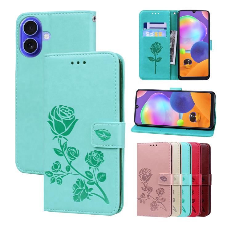 Funda de piel sintética con tapa abatible y relieve rosa para iPhone 17 (verde)