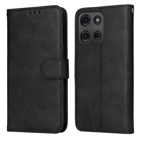 Funda Piel Sintética con Tapa para Motorola Moto G75 5G (Negra) Textura Clásica Becerro