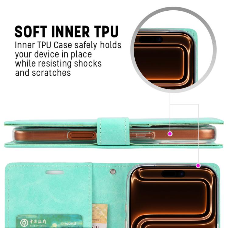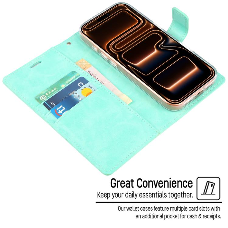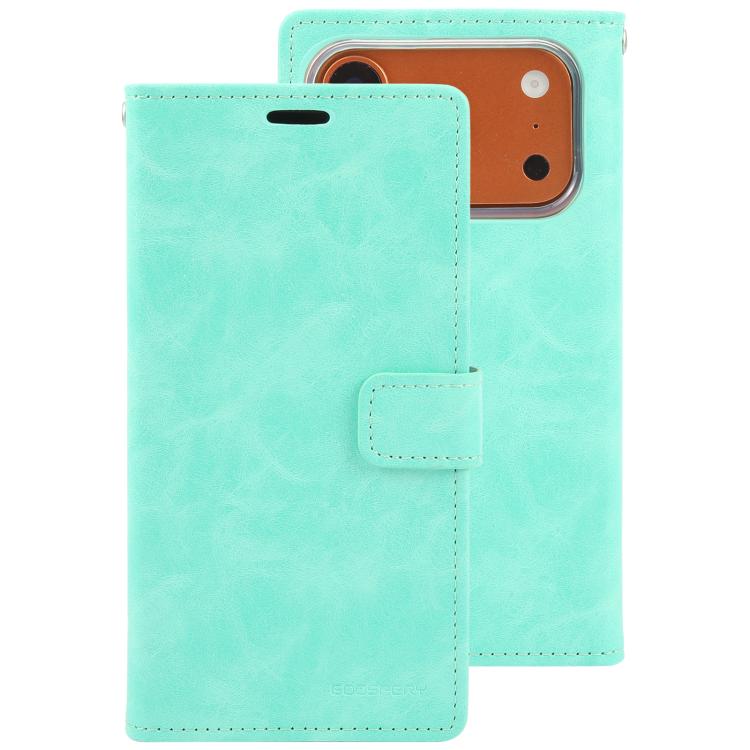 Funda de piel texturizada Crazy Horse GOOSPERY BLUE MOON para iPhone 17 Pro (Verde menta)