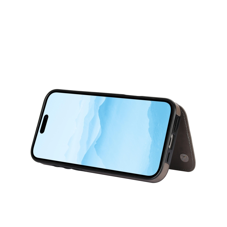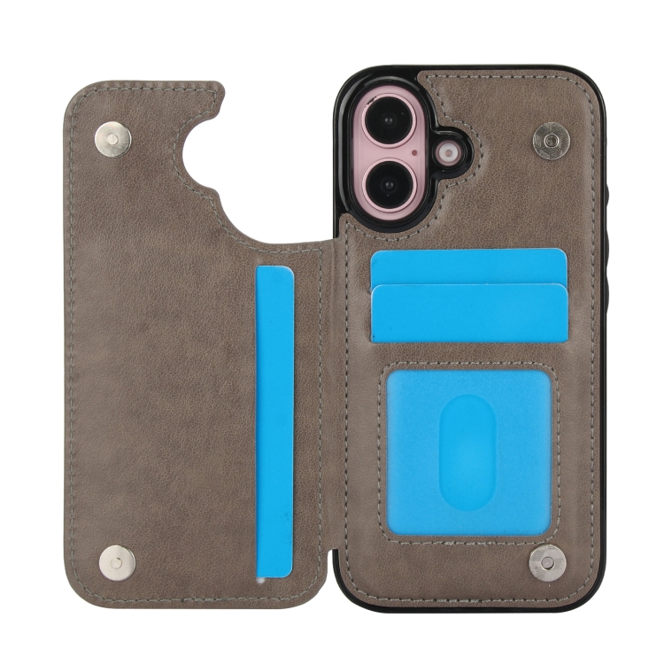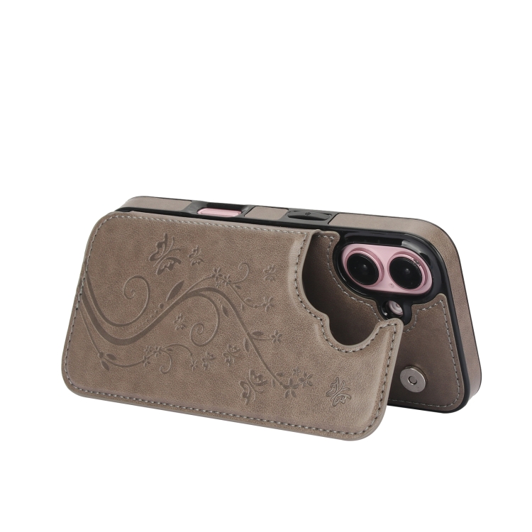 Funda de Pu para iPhone 16 Plus Doble Hebilla Estampado Mariposas (Gris)