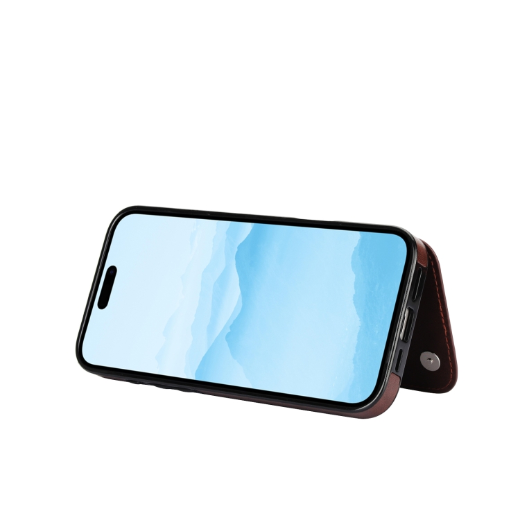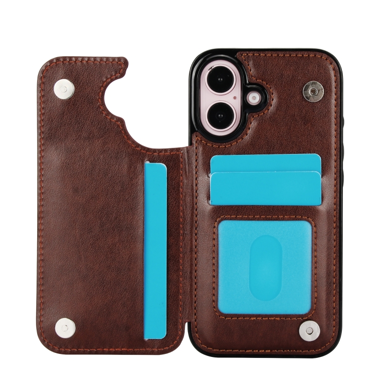 Funda de PU con doble hebilla y estampado de mariposas para iPhone 16 Plus (Marrón)
