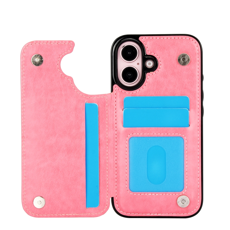 Funda de Pu con Doble Hebilla y Estampado de Mariposas para iPhone 16 Plus (Rosa)