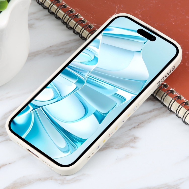 Funda de silicona iPhone 16 Planet Landing diseño Astronauta borde recto (Blanco)