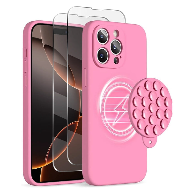 Funda de Silicona con Ventosa Magsafe para iPhone 16 Pro con Película de Pantalla (Rosa Suave)