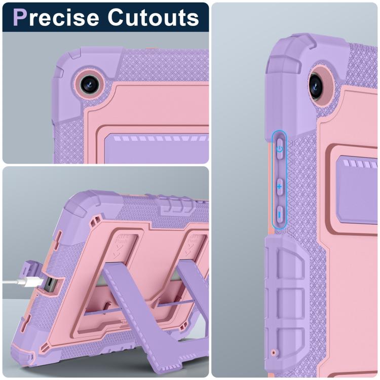 Funda de silicona hidrófuga para Samsung Galaxy Tab S10 FE/S9 con correa para el hombro (morado y oro rosa)