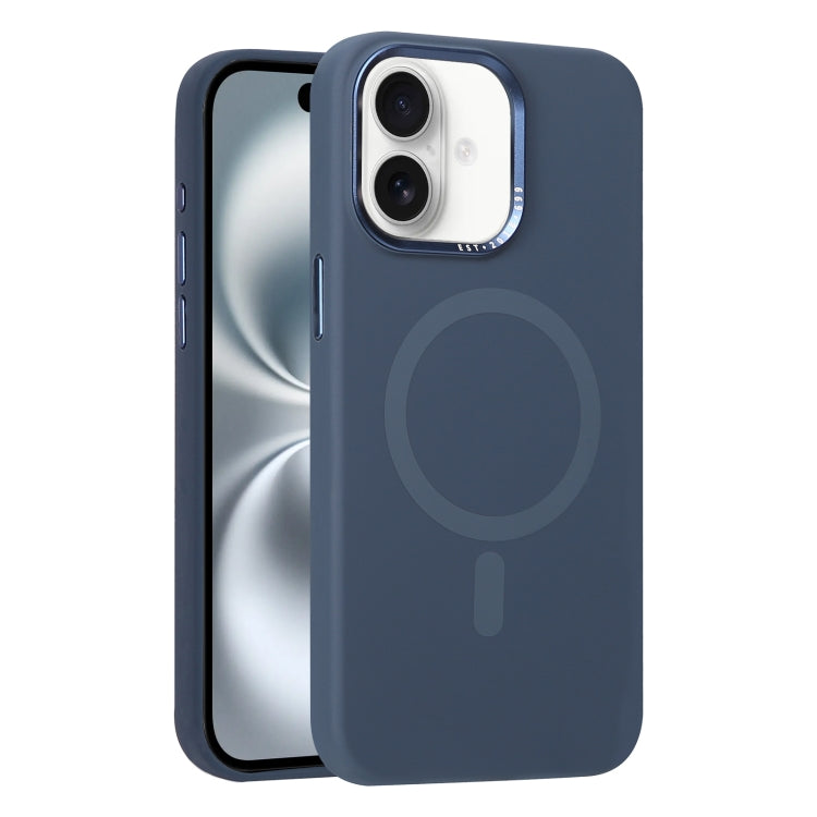Funda de Silicona Líquida con Marco de Lente de Metal Magsafe para iPhone 16 (Azul Medianoche)