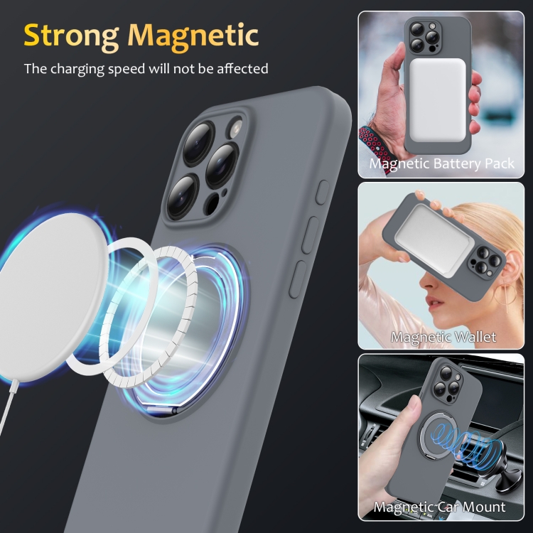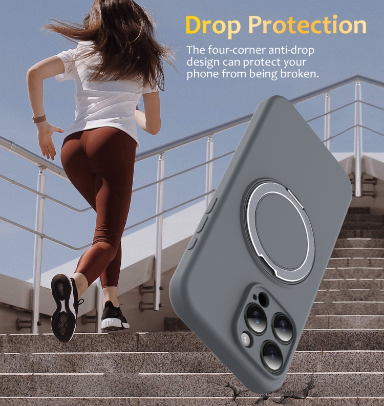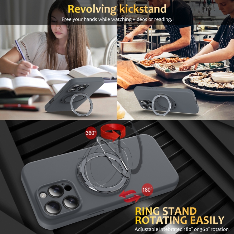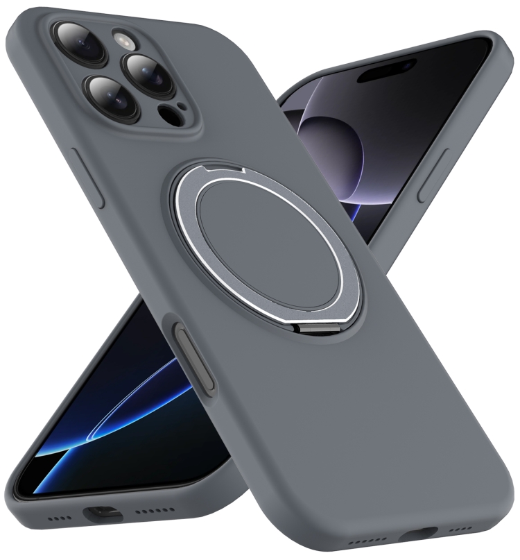Funda de Silicona Líquida Magsafe para iPhone 16 Pro Max con Soporte Giratorio (Gris)