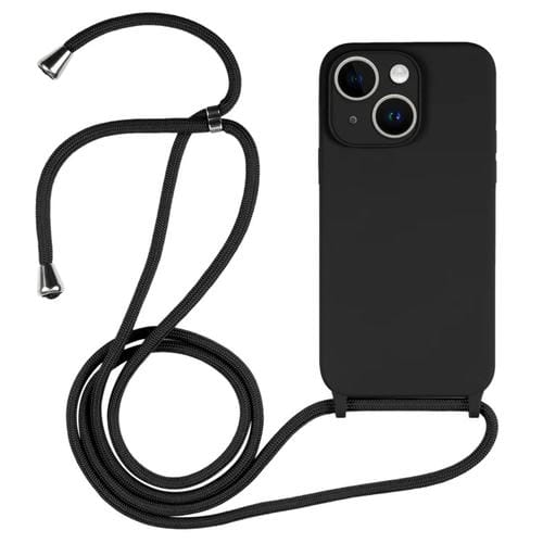 Liquid Silicone Case for iPhone 15 Crossbody Lanyard (Black)