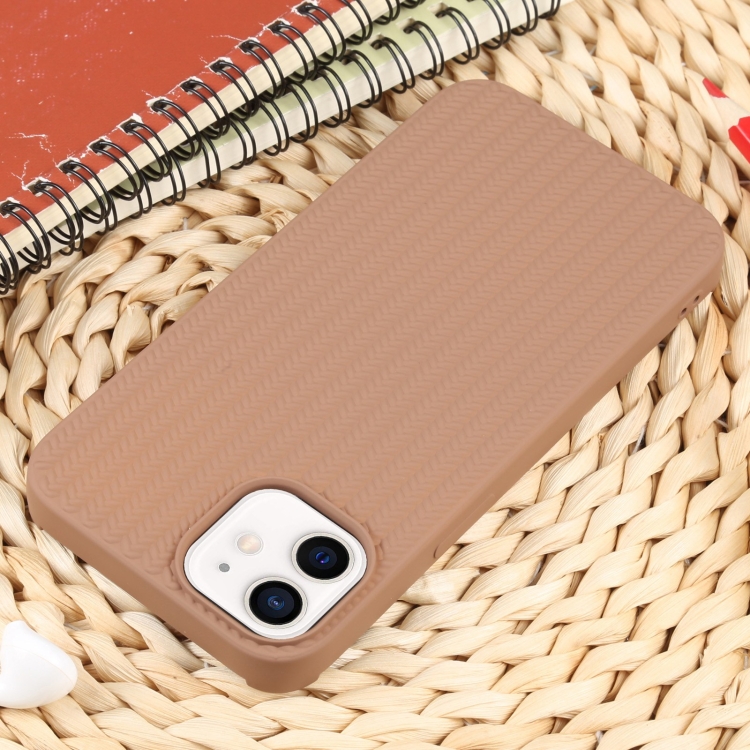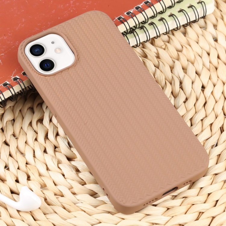Funda de Silicona para iPhone 12 con Textura de Tejido (Marrón)