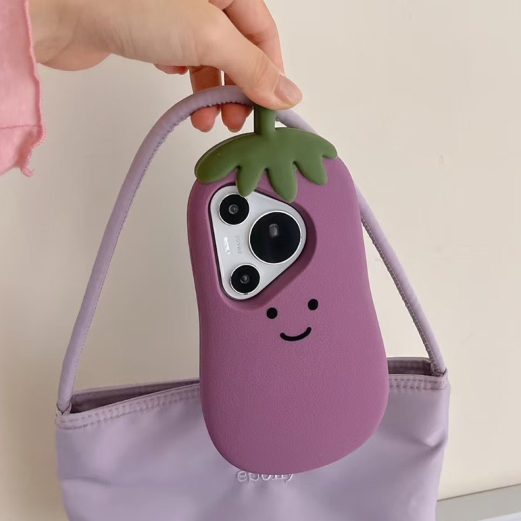 Funda de Silicona Huawei P70 Pro/P70 Pro+ con Dibujos 3D de Berenjena (Morado)