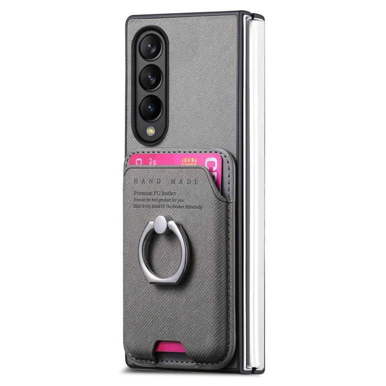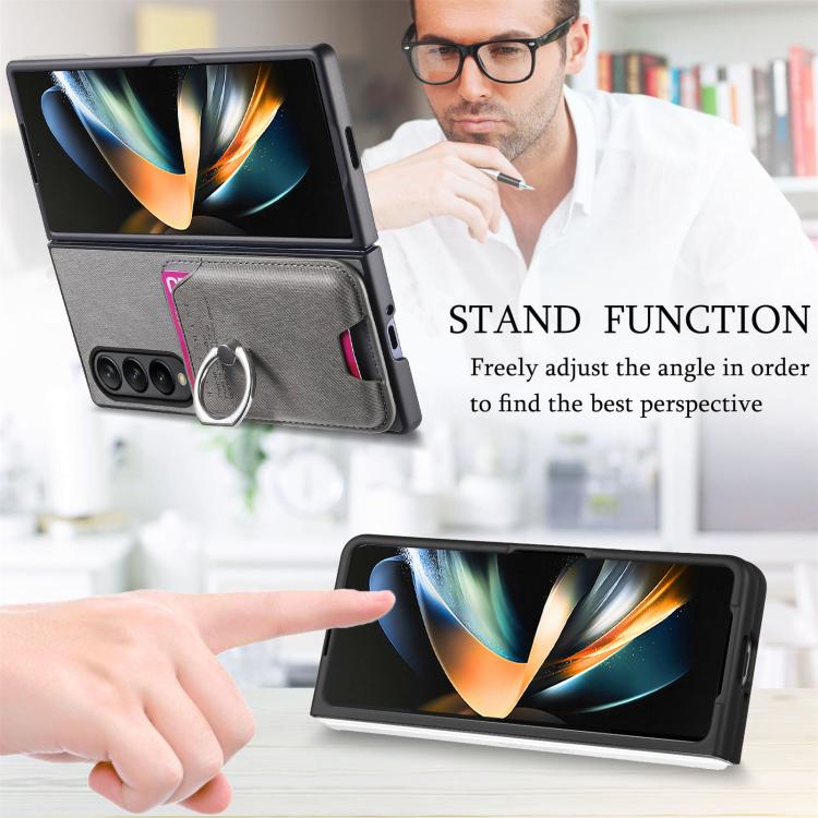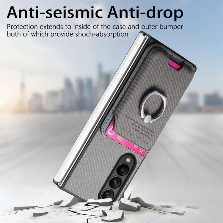 Funda de tela sarga con anillo magnético para Samsung Galaxy Z Fold3 5G (gris)