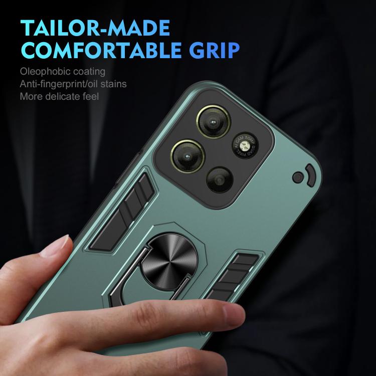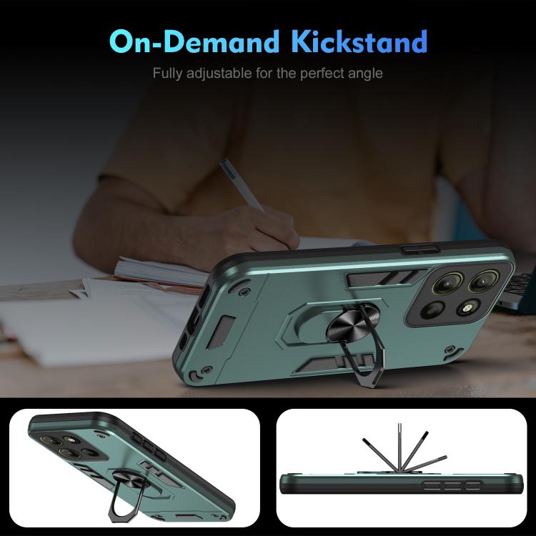 Funda de Teléfono Motorola Moto G15 con Soporte de Anillo de Metal y Protección a Prueba de Golpes (Verde)