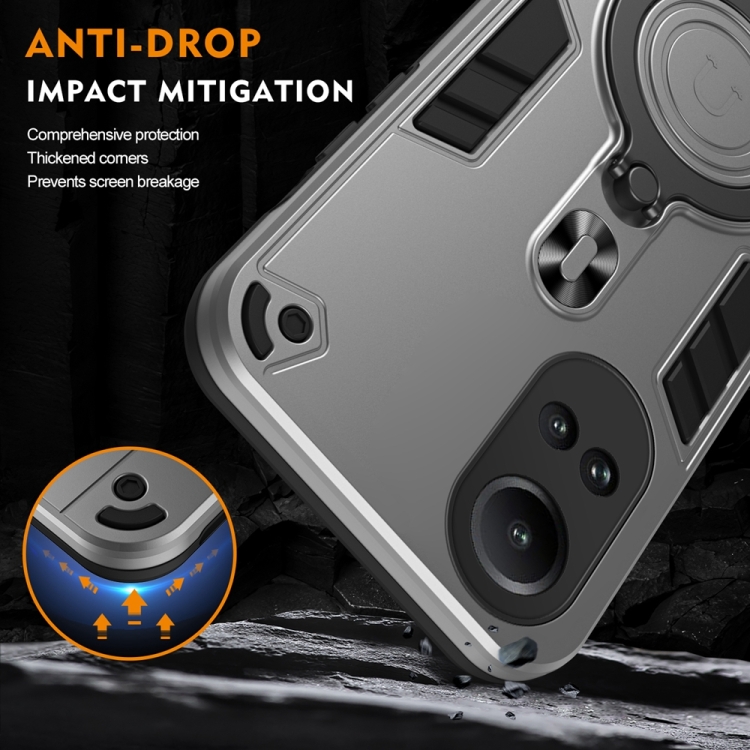 Funda de Teléfono con Soporte Giratorio de 360 Grados y Anillo de Metal para Oppo Reno10 5G (Gris Plateado)