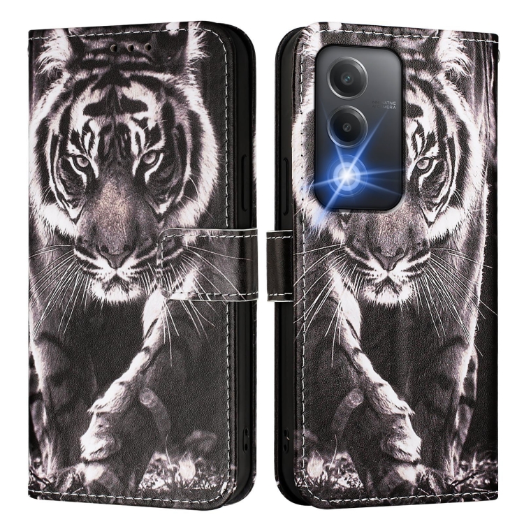 Funda de Teléfono de Cuero con Patrón de Dibujo de Colores de la India para Oppo A3 Pro 5G (Tigre Blanco y Negro)