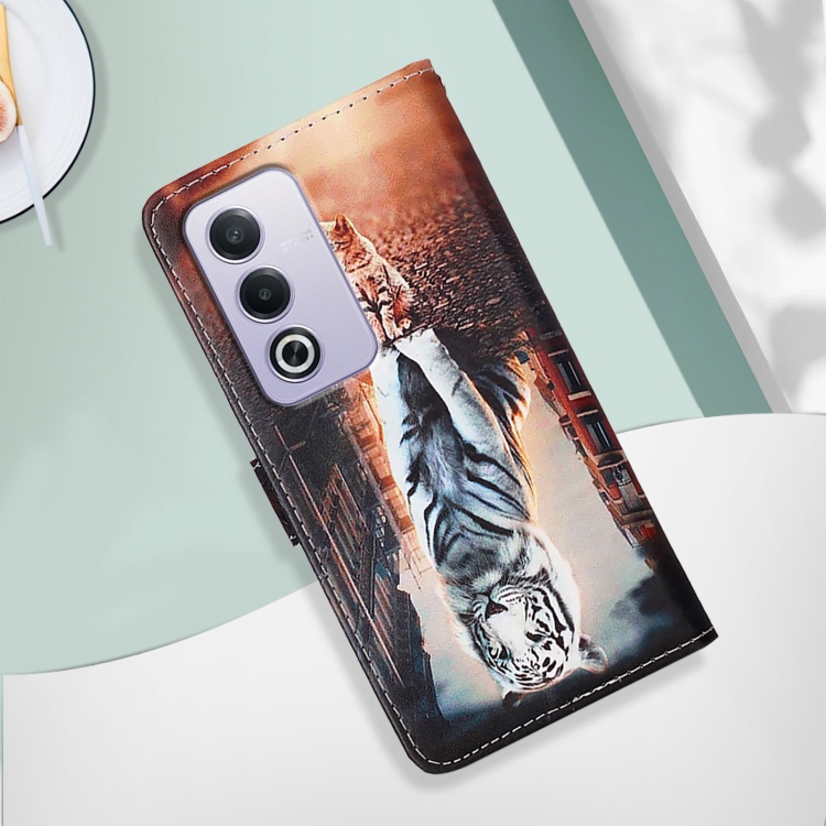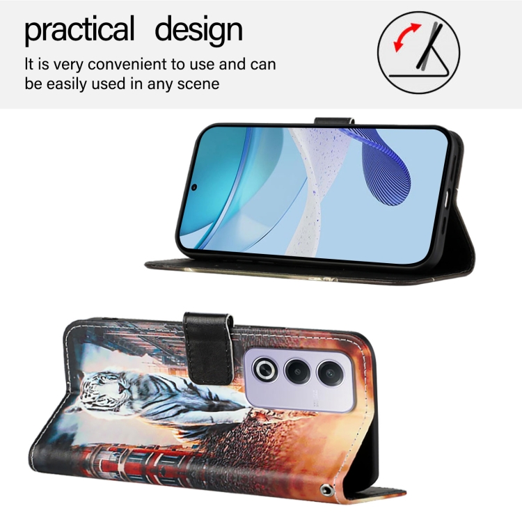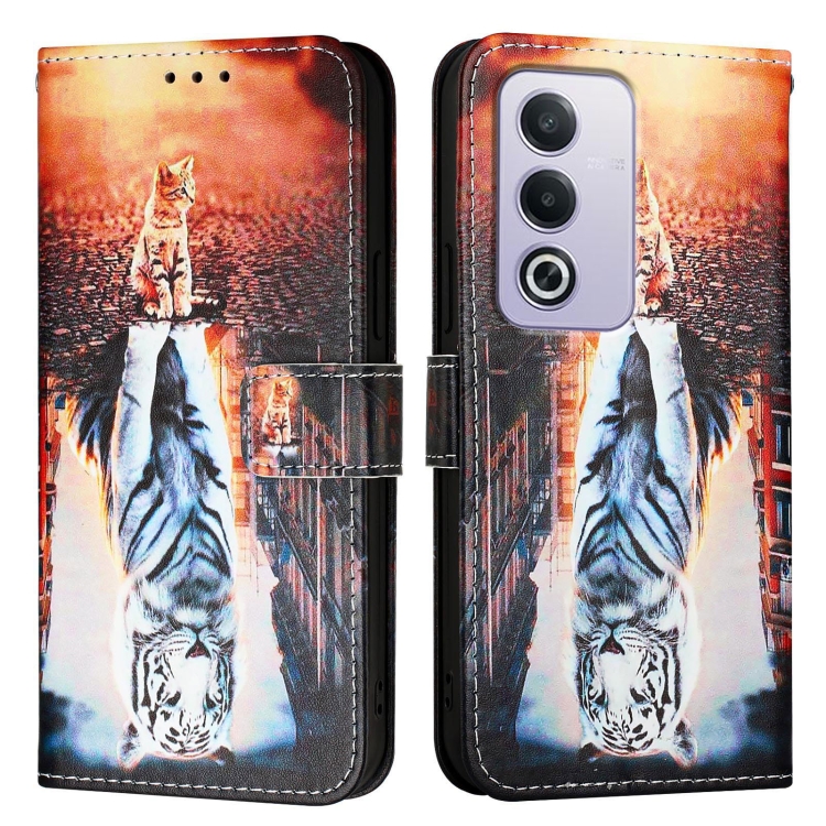 Funda de Teléfono de Cuero con Patrón de Dibujo de Colores de Tejido Liso para Oppo A3 Pro 5G (Gatos y Tigres)