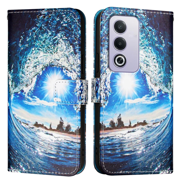 Funda de Teléfono de Cuero con Patrón de Dibujo de Colores de Tejido Liso para Oppo A3 Pro 5G (Ondas y Sol)