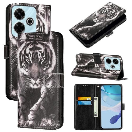 Funda de Teléfono de Cuero con Patrón de Dibujo de Colores de Tejido Liso para Xiaomi Redmi 13 4G (Tigre Blanco y Negro)