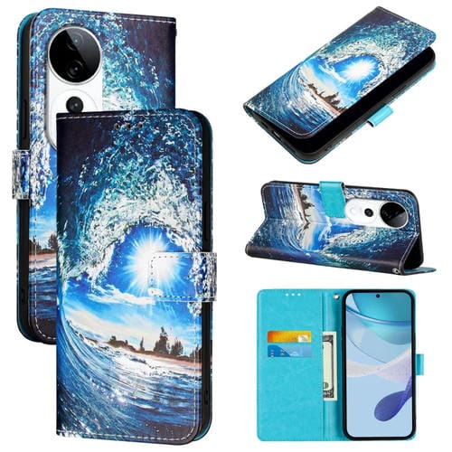 Funda de Teléfono de Cuero con Tejido Liso y Estampado de Dibujos de Colores para Vivo S19 Pro (Ondas y Sol)
