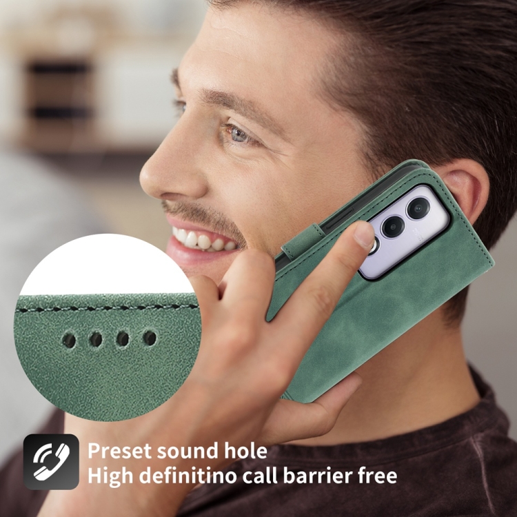 Funda de Teléfono de Piel Sintética y TPU Dream Line de Dierfeng para Oppo A3 Pro 5G (Verde)