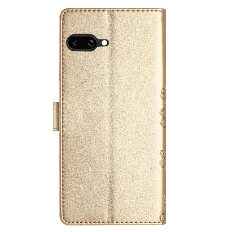 Funda de teléfono PU Google Pixel 9A con relieve Mariposa y flor de Cerezo (Dorada)