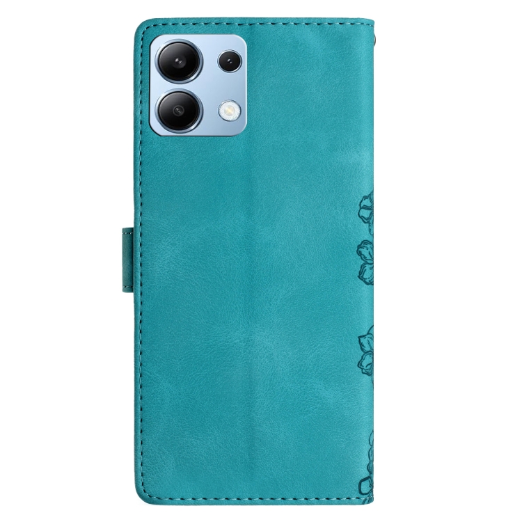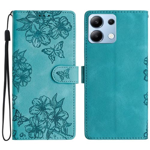 Funda de Teléfono de Pu con Relieve de Piel de Mariposa y Diseño de Flor de Cerezo para Redmi Note 13 4G (Verde)