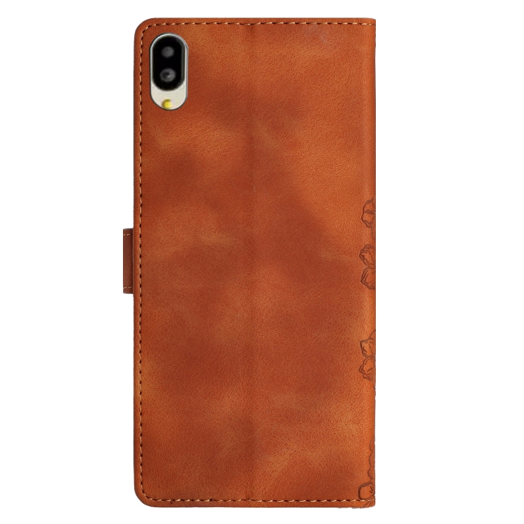 Funda de Teléfono PU con Relieve Mariposa y Flor de Cerezo para Sharp Basio Active SHG09 (Marrón)